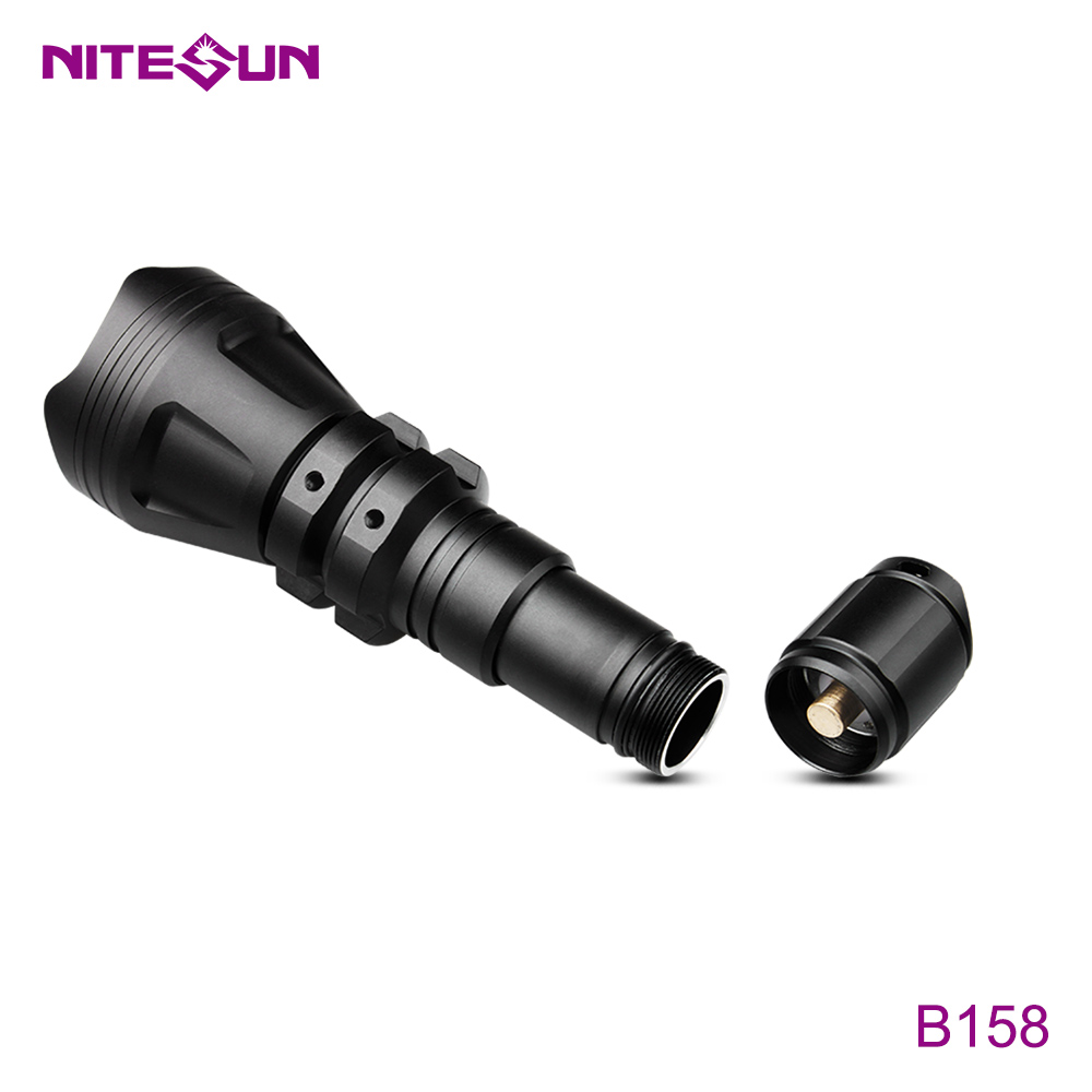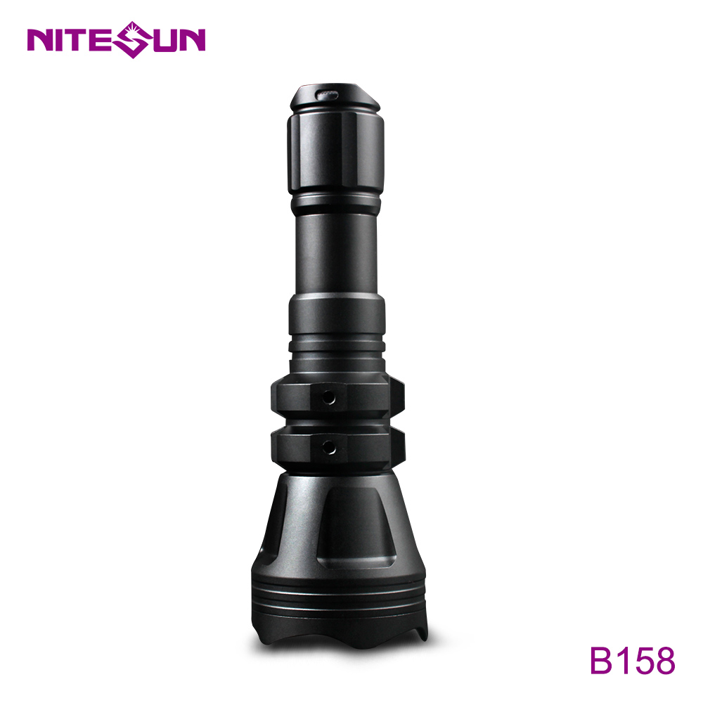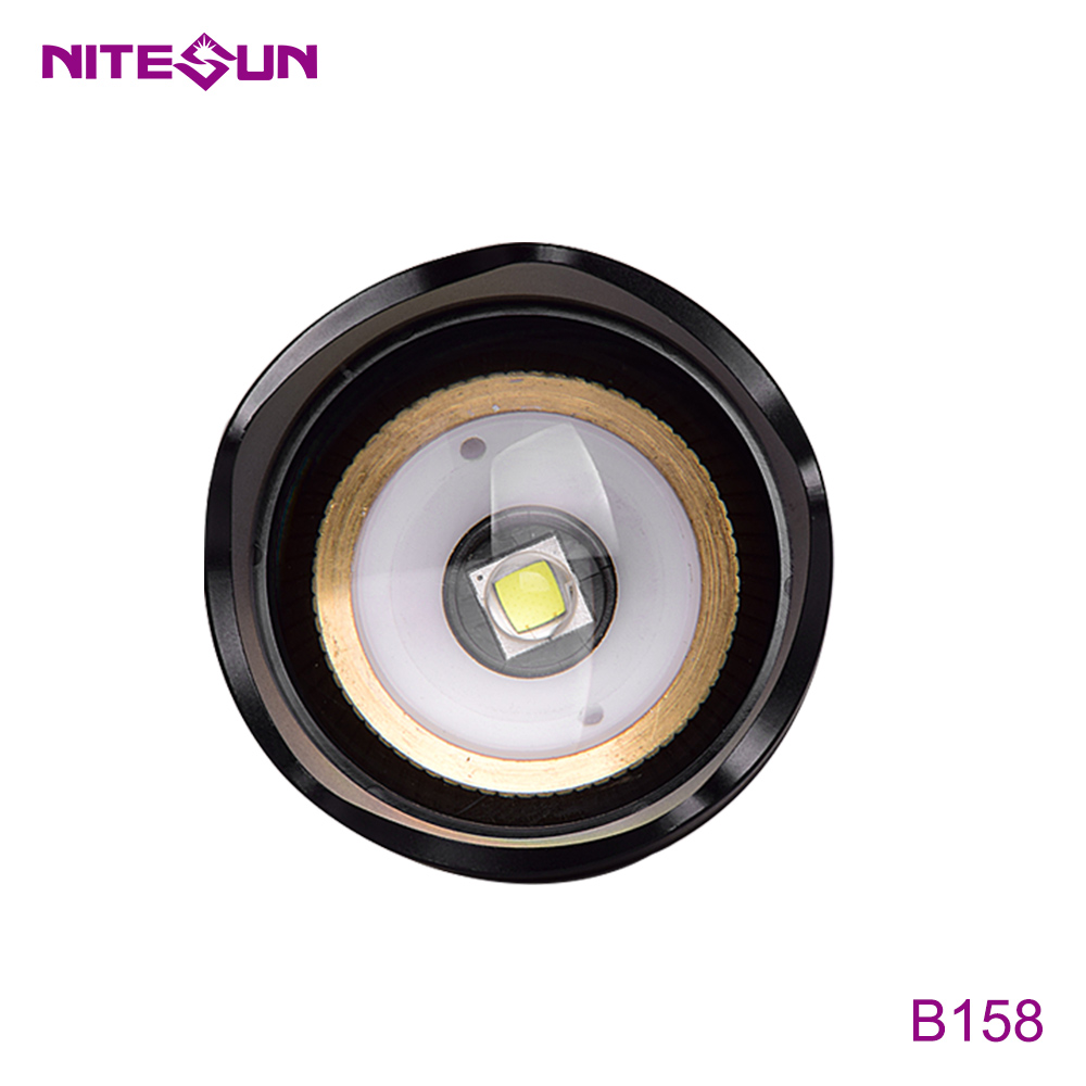 Nitesun B158, our most popular led zoom-able flashlight use the newest CREE XPL-V3 LED, max 300 lumens output on focus and 1000 lumens output on the flood. This flashlight use aircraft-grade AL-6061-T6 aluminum material with premium type III military hard-anodization anti-abrasive finish to produce high quality and user-friendly flashlight. Rotating body to zooming design is convenient to reality use and replace different color led module. Tail tactical switch and waterproof IP68, this zoom adjustable flashlight is a good choice for your outdoors, hunting, and tactical lighting.