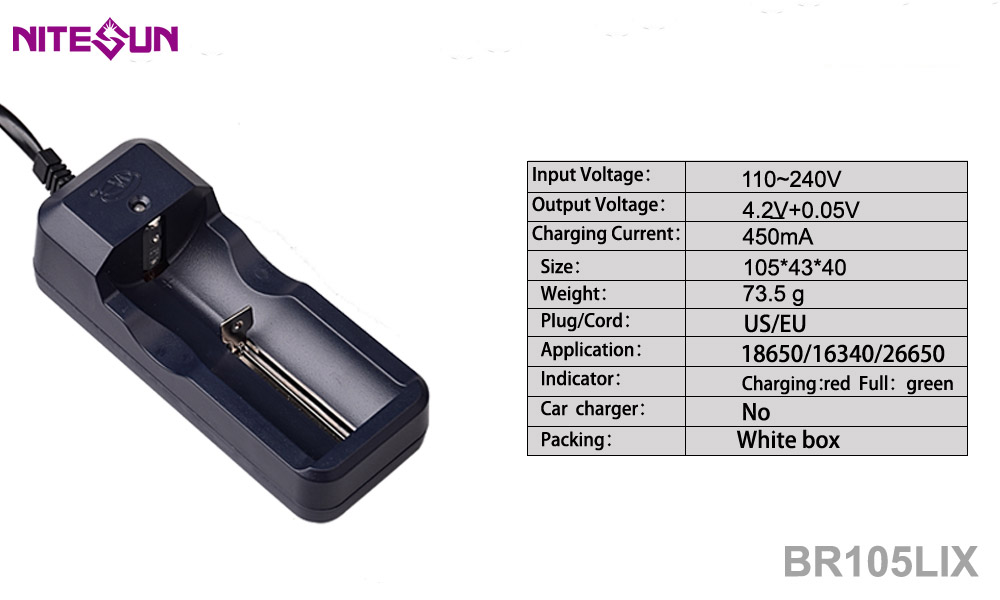 NITESUN BR121A Single-slot 18650 Battery Charger with Car Charger