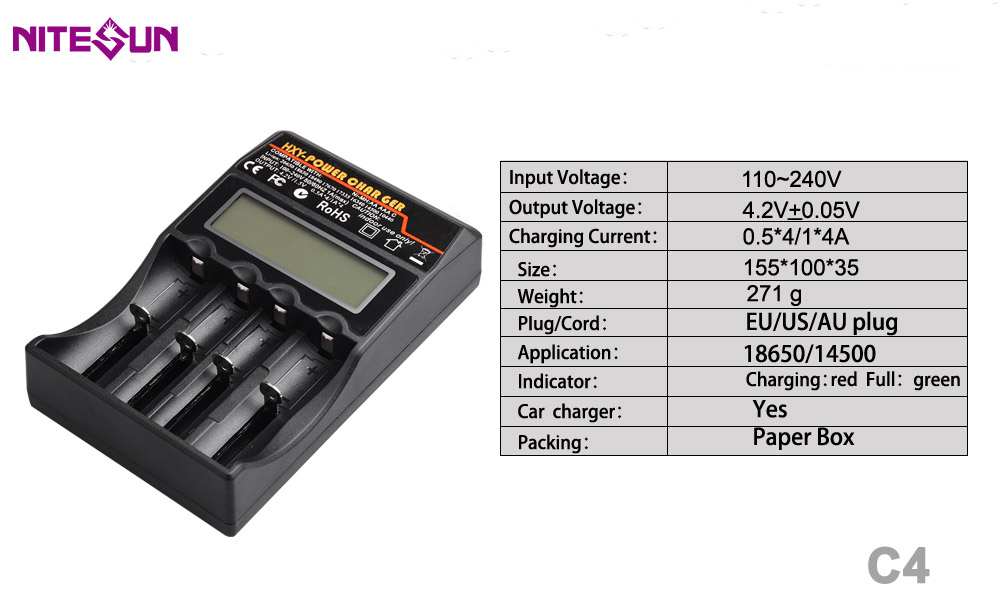 NITESUN BR121A Single-slot 18650 Battery Charger with Car Charger