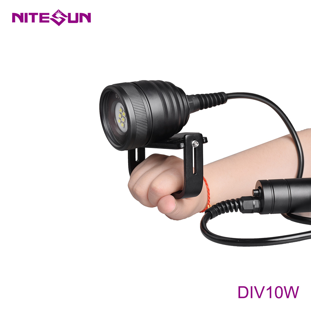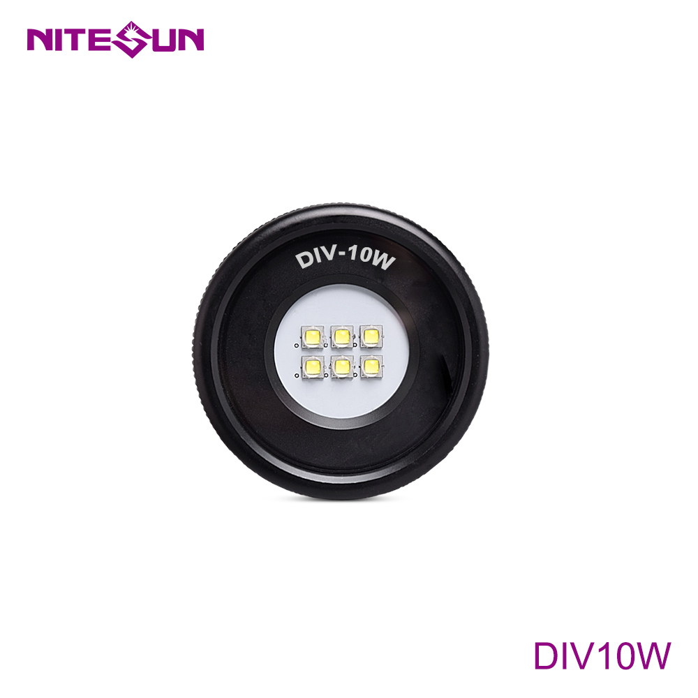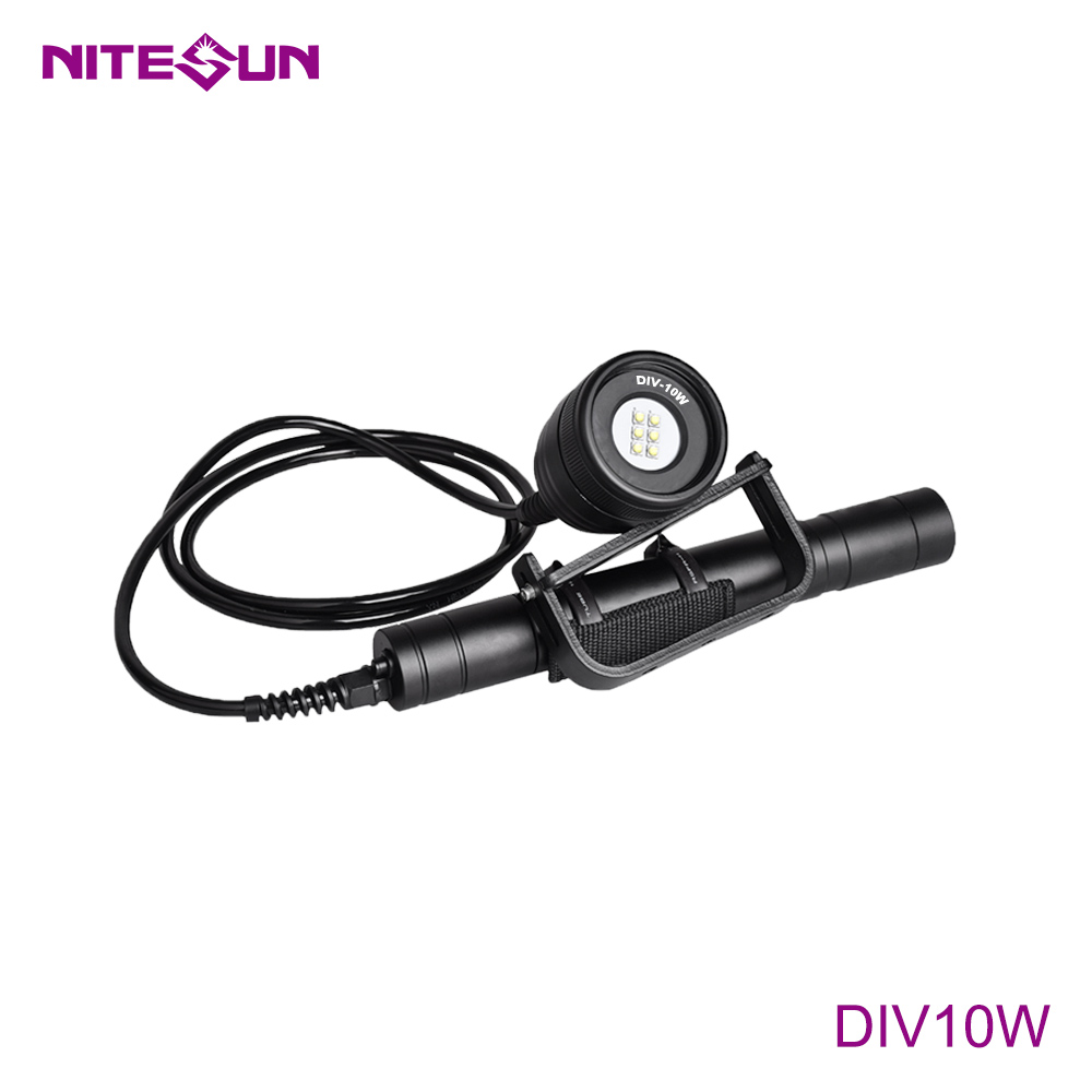 DIV10W is designed based on our technical diving light DIV10, but we use 6 pcs CREE XM-L2(U4) LED, which can reach Max 4500 lumens. Nitesun DIV10W can be widely used for scuba diving photography or underwater lighting.